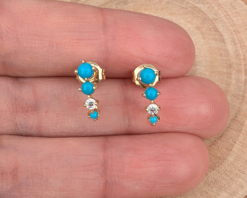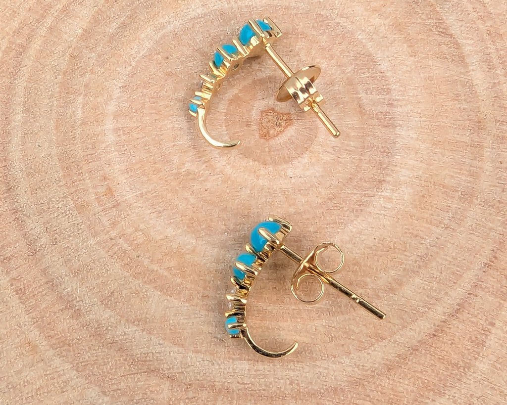 14k Solid Yellow Gold with Natural Turqouise and diamonds.