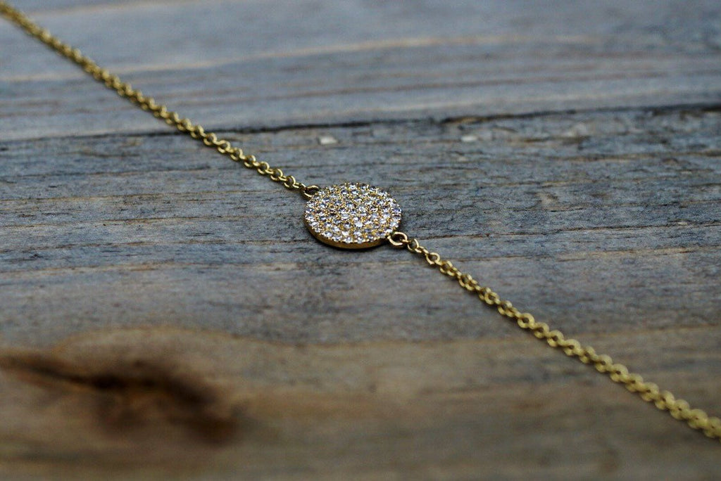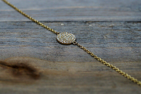 Beautiful Disk Shape Bracelet all on 14k Yellow Gold. With Diamonds Micro Pave Set.