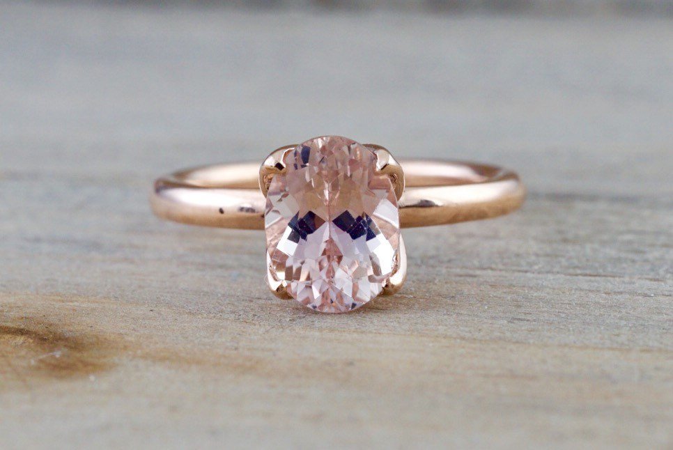 This beautiful solid 14k rose gold light pink/ peach Morganite ring is simply gorgeous. The light color of the peach complements the rose gold perfectly.